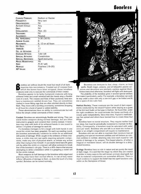 Ideen om et benløst monster, der suger blod har faktisk en parallel til et monster fra Dungeons & Dragons (men det er heller ikke vanskeligt med de mange, der er publiceret gennem årene). Boneless er fra Monstrous Compendium – Ravenloft Appendix III: Creatures of Darkness (1994):