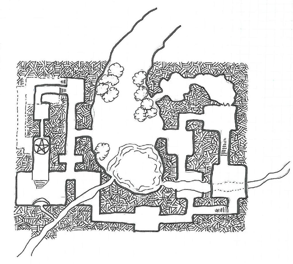 Kortet forestiller en sø i bunden af en slugt. Der er nogle indgange til forskellige huler, og kortet er inspireret af Caves of Chaos fra B2 Keep on the Borderlands (1979) i en miniature-version.