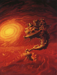 I det håndholdte spil har selskabet fundet vej gennem Lighuset, og får kendaren ved selskabets sidste visit havde stukket en rød opal i lommen, så åbner portalen sig pludselig (man skal have en ‘nøgle’ og portalens nøgle er den røde opal). Selskabet hopper gennem portalen og lander på en terrasse! Der er en fantastisk udsigt over et hav af flammer, en himmel af ild og et landskab af brusende hede, hvor luften er brændende og havet tykt af ild. På terrassen står nogle vagter, og det kommer kort til kamp, inden selskabet nedkæmper dem. Herefter følger selskabet den eneste vej af terrassen. Terrassen hænger på siden af en kæmpe klippemur, og en sti er hugget ind i klippens side. Selskabet følger den, og de finder en forpost med et par ballistaer og en flok mistænksomme hobgoblin-vagter, som lytter til selskabets røverhistorier, inden det kommer til en kort kamp, som er heltene sejrrig.