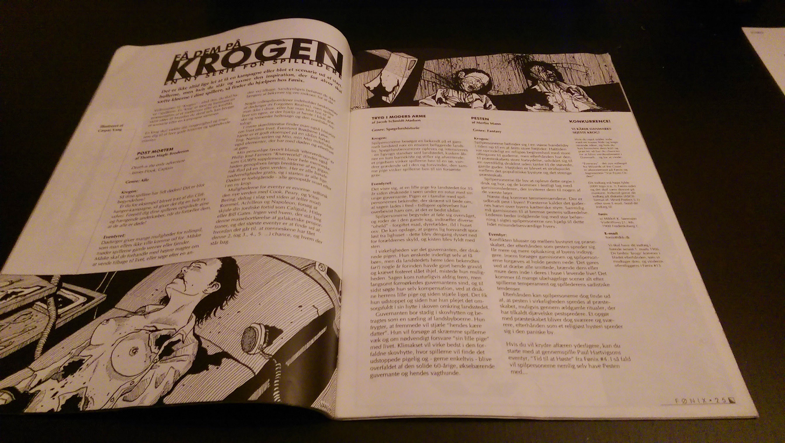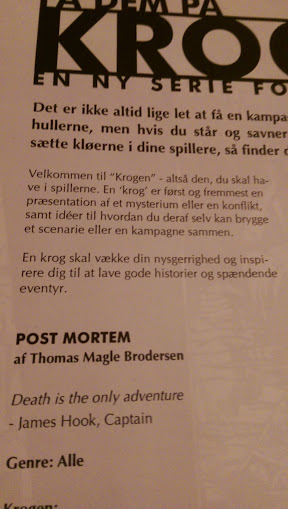 Det er jo en belejlig bemærkning til at komme ind på et emne, som jeg har gået og summet i nogen tid, nemlig kroge i rollespil, og hvordan de kom til. For er der noget, jeg erindrer fra tidsskriftet Fønix, så var det en en serie artikler bestående af kroge til at hive karaktererne ind i spillet (#11-13; 1995). Hvorfor var krogene der, og var det nødvendigt med dem? Måske var de nødvendige, fordi det egentlig var en helt ny mekanik?