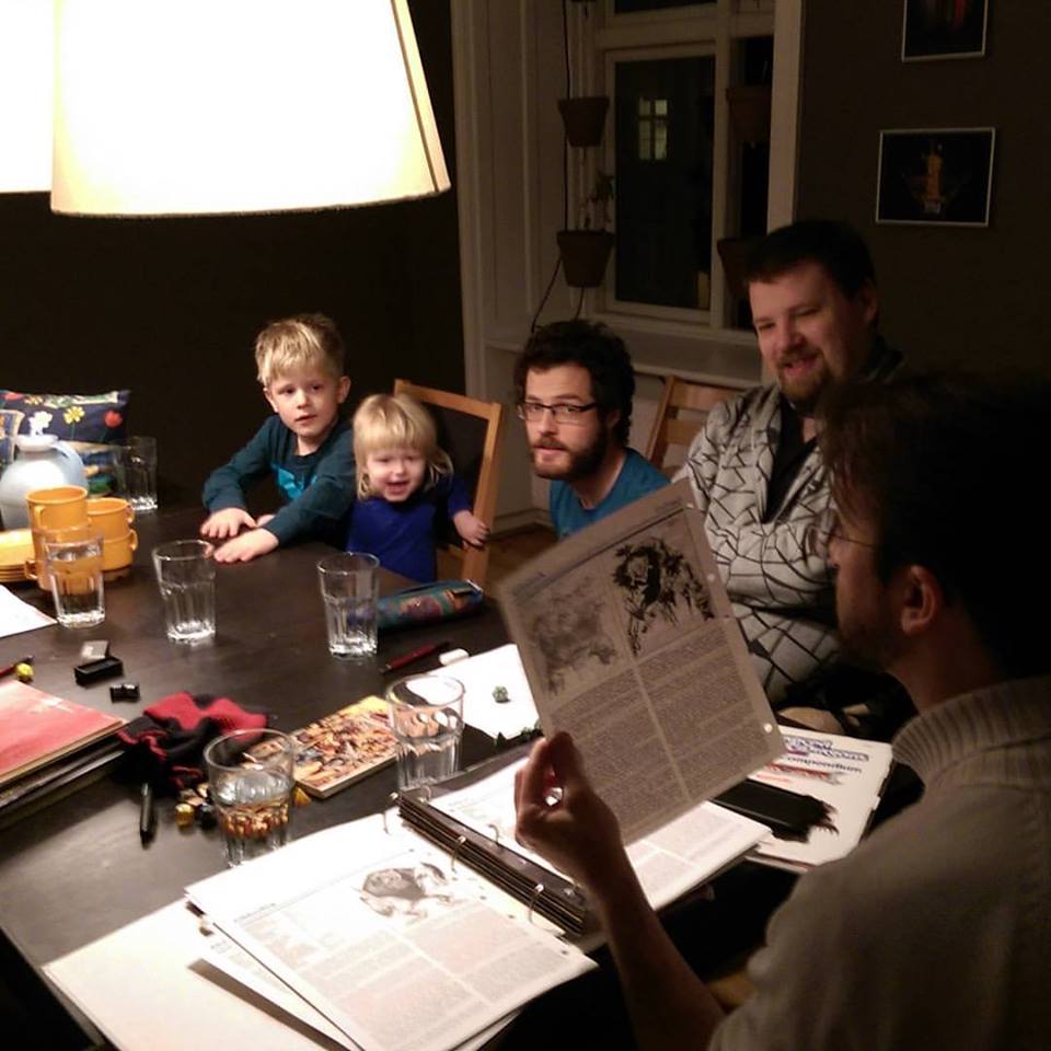 Inden vi går i gang med rollespil, skal børnene i seng. Inden det sker, fortæller vores GM, Nis, om de forskellige monstre i D&D for dem. Denne gang er det monstre fra Fiend Folio (AD&D 2nd ed). Det er fra perioden, hvor monster-bøgerne stadig kom som ark, man satte i ringbind.