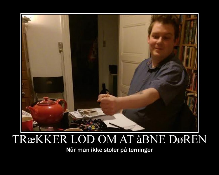 Jeg nænnede ikke at fortælle ham, at hvad der mentes med seancer og medium, men på den anden side, Lars har aldrig fået spillet så meget rollespil og indlevet sig så meget i så mange forskellige NPC’ere, siden han blev spiritisternes spilleder. Jeg har i hvert fald aldrig fået nogen klager fra dem over hans evner som spilleder.