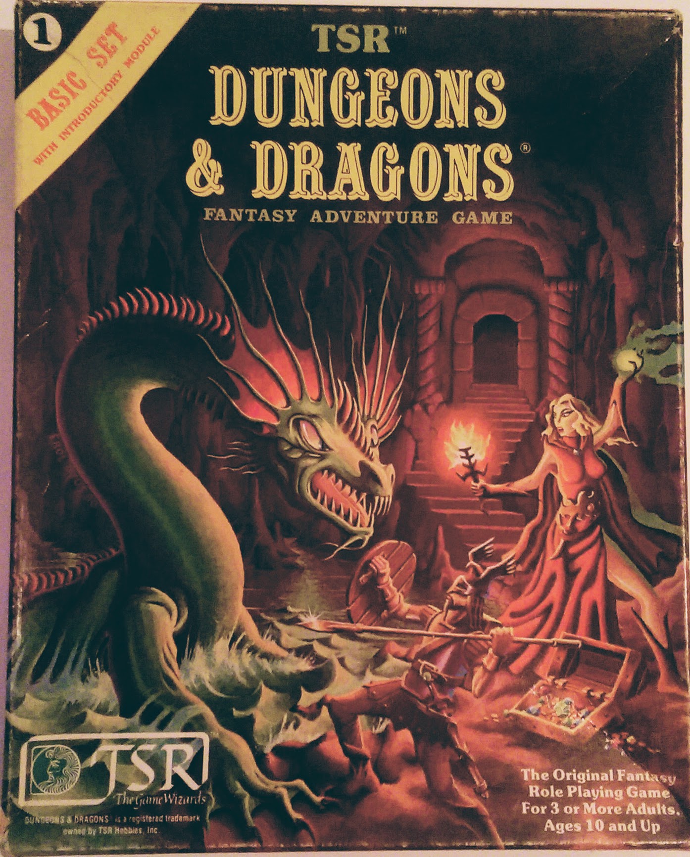D&D’s oprindelse er mere knudret end man måtte regne med. Det første D&D udkom i 1974, hvor det byggedes oven på figurkrigsspillet Chainmail, men måden at spille rollespil på er en syntese af flere ideer, som florerede sidst i 1960’erne og begyndelsen af 1970’erne, og som var centreret omkring Gary Gygax og hans spilgrupper, omkring Dave Arneson og Braunstein – og det er en historie for en anden gang. Udfaldet var Dungeons & Dragons – men ikke et D&D, som vi nu kender. Vi spoler derfor nogle år frem.