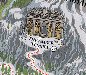Indenfor er templet med sine marmorgulve og ravbeklædte lofter (og nogle steder også vægge). Her er statuer, sammenstyrtede områder og levn, der synes at indikere at troldmænd havde hjemme her. I takt med at selskabet bevæger sig gennem gangene støder de på svævende kranier omgivet af grøn ild, som de fornuftigt nok vælger ikke at konfrontere. Andet steds render de ind i en kæmpe ravstatue, som ligger delvist ødelagt grundet sammenstyrtninger, men den begynder at røre på sig, da de vil undersøge brudstykkerne. De ændrer derfor plan.