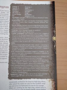 Her er tre eksempler på, hvad der ligger bag udtrykket. Det handler om statistics og characterstics, der med sine kryptiske noteringer og besynderlige udtryk frister med spændende spilmekanismer og potentielle eventyr.