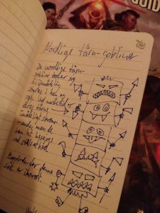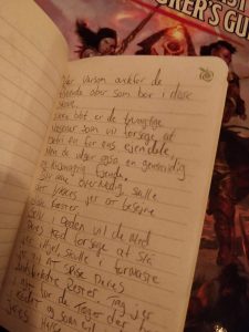 Mine kampagner bruger mange husregler til at understøtte de historier, vi gerne vil spille, og en husregel handler om at føre en rejsejournal, som spillerne skriver i, og som er et in-game artefact.