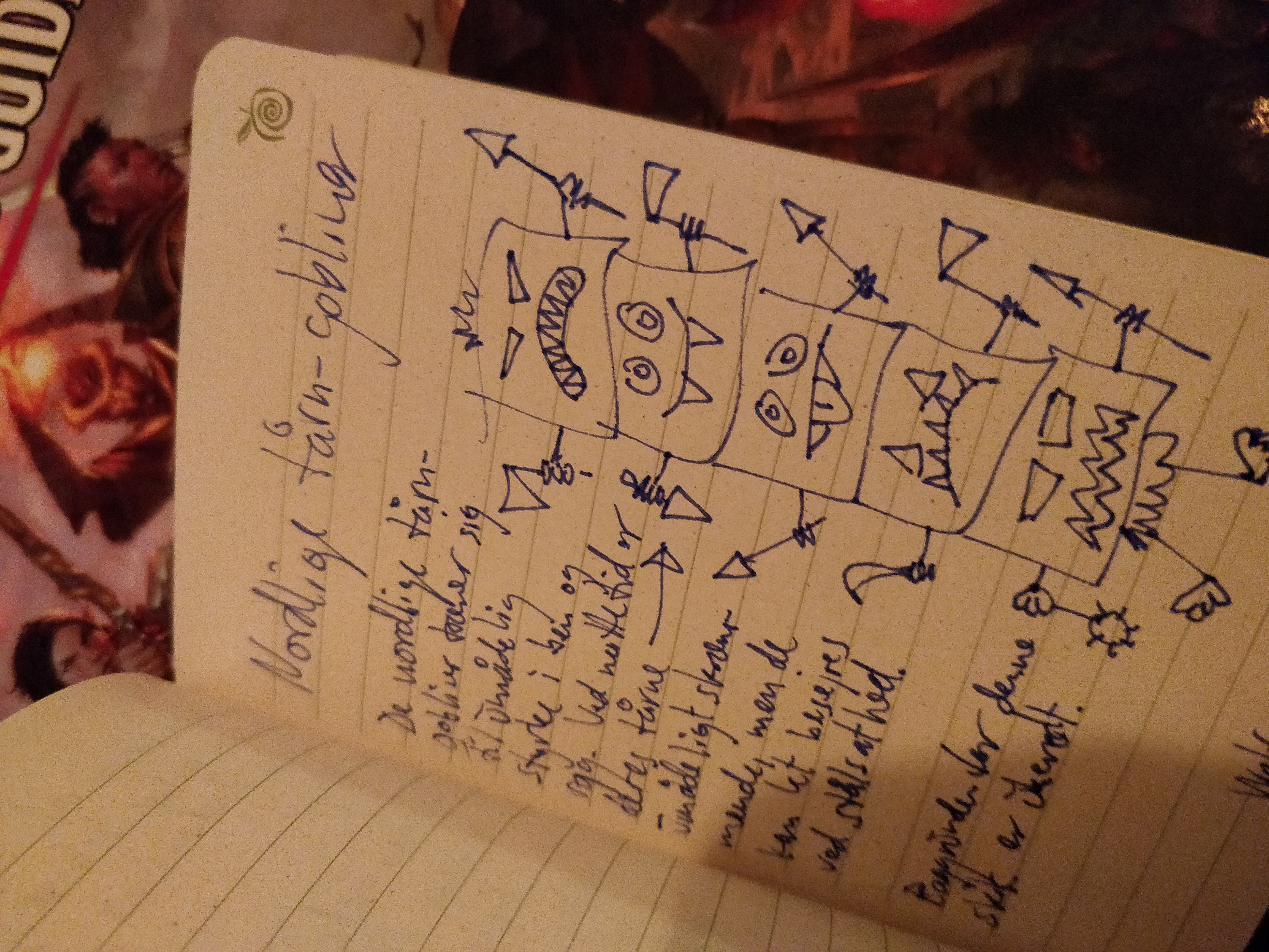 Jeg havde på forhånd føjet en del beskrivelser til journalen, som så blev overrakt til spillerne, og de skiftedes til at føje historier til, som de skrev in-character ind i journalen, mens vi sad og spillede.