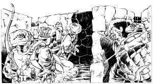 Igen udspiller sig en kort og hektisk kamp, hvor gruppens nye ven forsøger at bidrage, og hvor de kæmpende af et par omgang er i fare for at falde i skakten, men det lykkes selskabet af hugge fjenden ned og derefter storme ned af zigguraten. Kwalu rør hastigt ved monolitten, og for hans indre blik mærker han et varmt mørke, og en uset kraft lede efter ham. Så har han på fornemmelsen, at et par gule slangeøjne er i mørket over pyramiden og stirrer ned på den. Resten af gruppen planlægger en hastig retræte. Uden for svæver fjender i luften over bygningen, og de gør straks klar til angreb, mens vore helte flygter ind i junglen og skjuler sig mellem træer og blade for at undgå den flyvende fjende.