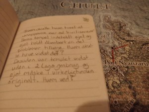De mange karakterer i spillet lader mig klippe i handlingen mellem de tre forskellige grupper, og det gør, at vi får hele tiden set forskellige dele af spillet, og de forskellige grene kan spejle sig i hinanden. Som spilleder er det sjovt at strukturere spillet mellem de forskellige grene, og det gør også, at tempoet i spillet kan moduleres efter ikke kun efter den enkelte gruppes forløb, men også i forhold til de forskellige grupper, så dagens spil begyndte med gruppe to, som sejler ned af floden, og som ikke direkte oplever plotting eller afdækker mysterier, men som ser konsekvenserne af mysteriet og den voksende trussel fra dødningene, mens handlingen derefter kunne klippe over til gruppe tre, som var i gang med at udforske en plotgren, mens vi denne gang ikke havde tid til gruppe et, som har fat i en anden plotgren.