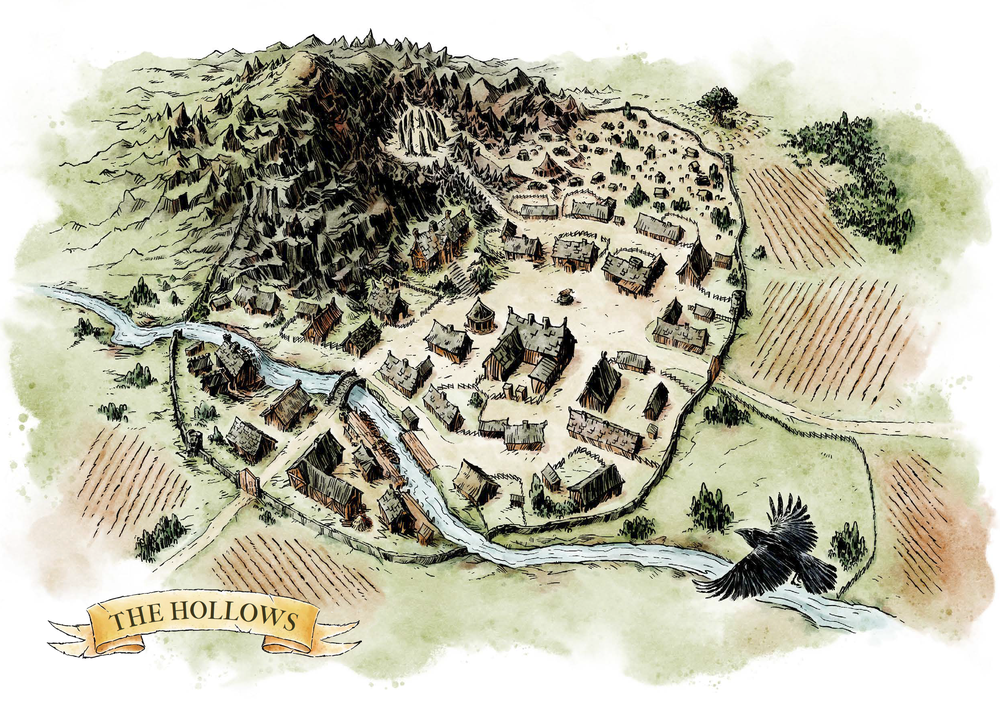 Kort før mørkets frembrud når selskabet deres mål. De ankommer til landsbyen The Hollows – som jeg nok døber Dokkeslav eller Kumleklint, som er navnet i den svenske udgave af spillet – som er omkranset af en lav stenmur bevokset med blomstrene roser. Porten er åben, og inde fra landsbyen ses dovne røgsøjler rejse sig fra skorstene, lyden af børn, der løber og leger kan høres, og der er en døsig, afslappet stemning i den lille by.