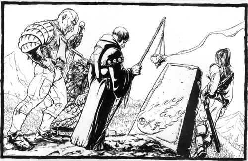 Troldmandslærlingen Punzenmann stormer ind med sin stav mod samme ridder og svinger hårdt men ikke så effektivt. Dog er fjenden trængt op i en krog og det giver en fordel. Vores kusk Siegfried bidrager også i kampen, men uden den store succes.