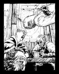 Vi begyndte derfor med at forhøre os omkring i kroen, og indbruddet var ikke blevet bemærket, da to mistænkelige gutter, et menneske og en dværg, var kommet op og toppes, og deres korporlige skænderi havde tilranet sig stedets opmærksomhed, så andre kunne agere gedulgt.