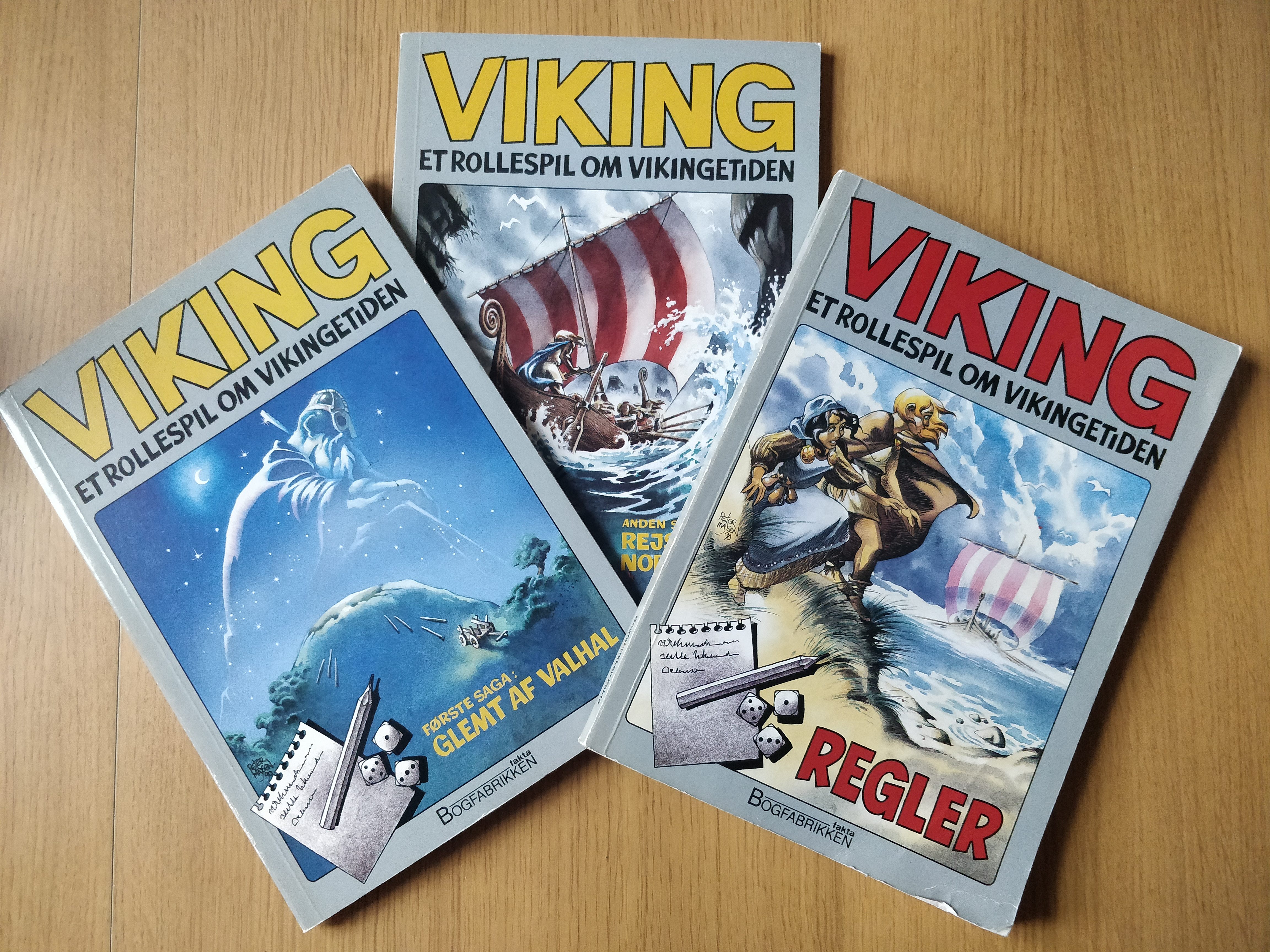 Viking er ikke noget, jeg har spillet i 30 år, men det er sammen med D&D basic noget af det allerførste rollespil, jeg spillede, og det har jeg derfor særlige erindringer om. Bøgerne er at finde i mit bibliotek, og der er siden kommet en illustration til af Peter Madsen.