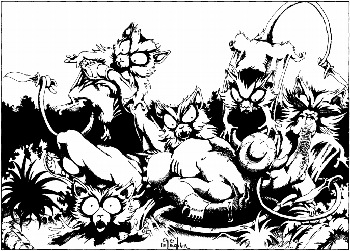 Resten af selskabet slutter sig via magi og klatreevner til tyven, og snart hele gruppen oppe på toppen af skrænten, og de marcherer et lille stykke, inden det for mørkt, og de slår lejr. Den følgende dag fortsætter færden, men der går ikke lang tid førend de hører lyden af kamptummel og våbengny, og forude udspiller sig en større kamp. 30 aranea (de intelligente edderkopper fra tidligere) med spyd og sværd angriber en lille flok pelsede væsner, som viser sig at være flyveabekattefolk eller phanatons. Vore helte griber ind. En fireball eliminerer otte aranea, og de andre hugger yderligere nogle stykker ned i første kamprunde, og fjenden bruger skiftet i magtbalancen til at flygte.