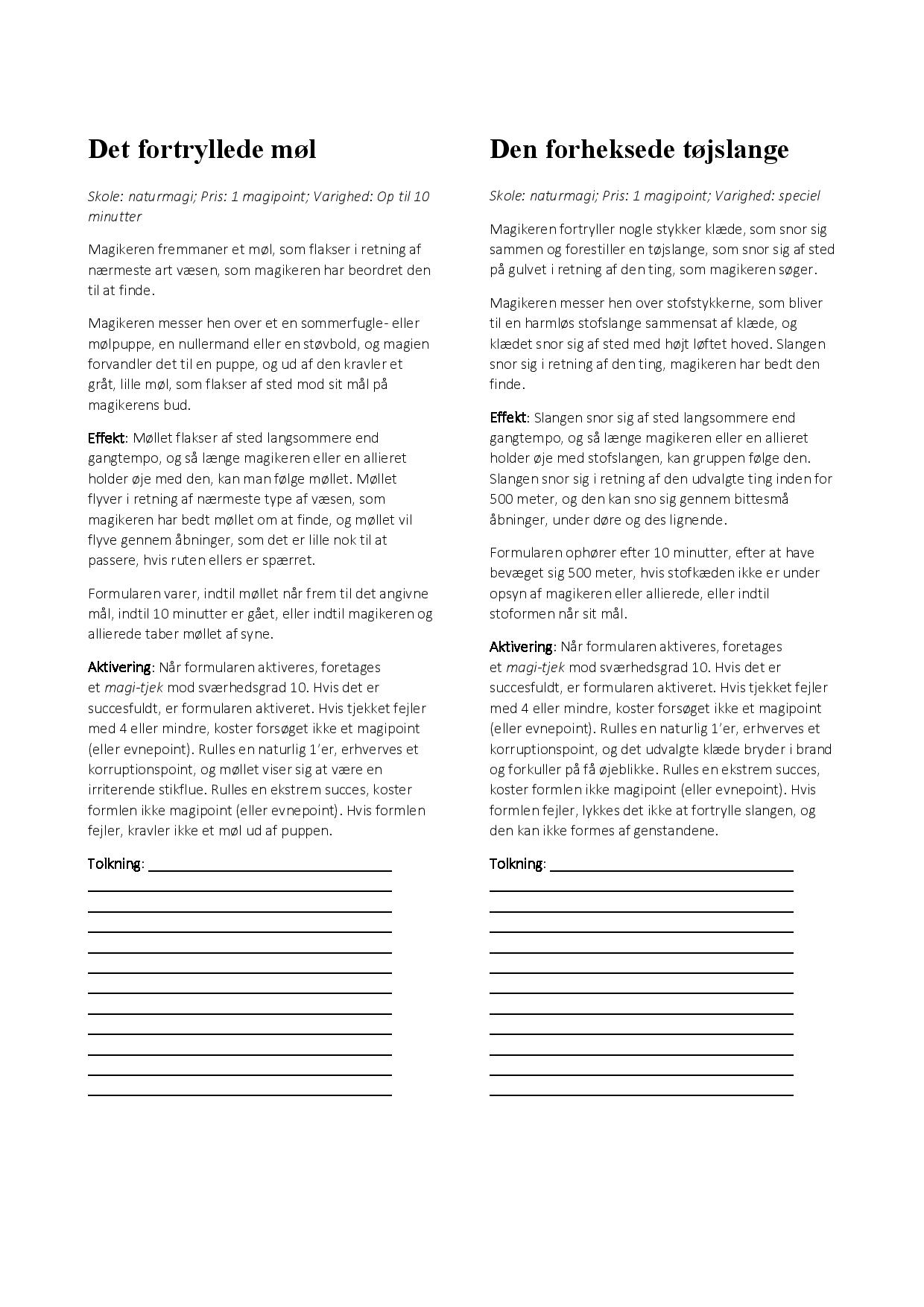 I Tomb of Annihiliation fører vi journal fra gang til gang, hvor spillerne skriver in character betragtninger ned, og det er en mulighed, at vi afsætter en sektion af journalerne til at rumme formulartolkninger fremover. Journalreglen har jeg udbygget til også at inkludere beskrivelser af formularer, som opfører sig mærkeligt eller skaber bi-effekter: Trylleformularer på afveje.