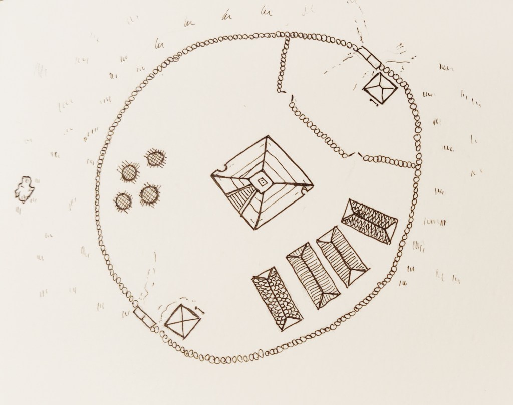 Via en clairvoyance spell studeres området nærmere af Eldan. Lejren på højens top er en rund lejr med en palisademur hele vejen rundt, som er udstyret med to porte med hver deres tårn. Inde i lejren er en række langhuse, der blandt andet fungerer som barakker. Der er et område med fangegruber, hvor der er lagt trægitre hen over. Der er ved den ene port en indhegning med dinosaurer (som bruges som ride- og arbejdsdyr), og i midten er der en lille ziggurat med et blodigt alter på toppen, og to indgange, som fører under zigguraten. Der er 80-100 sortglaskrigere i lejren.