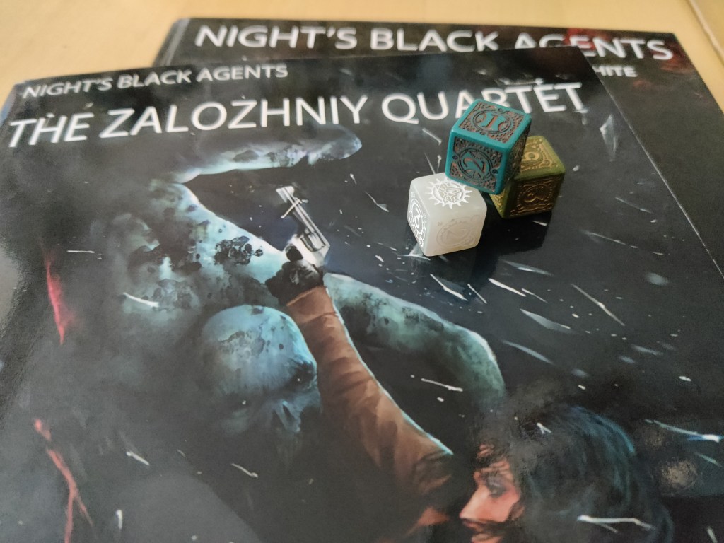 Det kommer dog ikke til at ske lige med det samme. Vi holder nu en pause med Night’s Black Agents. Det næste vi sætter os for at spille er Dragon Bane, som er den nye udgave af Drakar och demoner fra Free League, som udkommer senere på sommeren. Som backere af kickstarteren har vi allerede adgang til det digitale materiale og kan derfor påbegynde spillet.