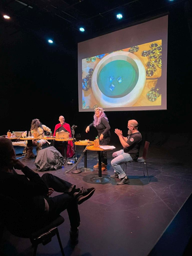 Selv mærker jeg skellet, når jeg for eksempel er til shows som I sidder på en kro eller til Dimension 20 live, eller hvis jeg ser udvalgte rollespil optaget i et studie som feks Lego’s D&D episode eller Relics and Rarities. Overvejelser om det skel indgår, når jeg selv har lavet rollespil til podcast og live-format med Han Duo rollespiller eller med De rejsende. Shows på denne side af skellet er lavet med en bevidsthed om at der er et publikum.